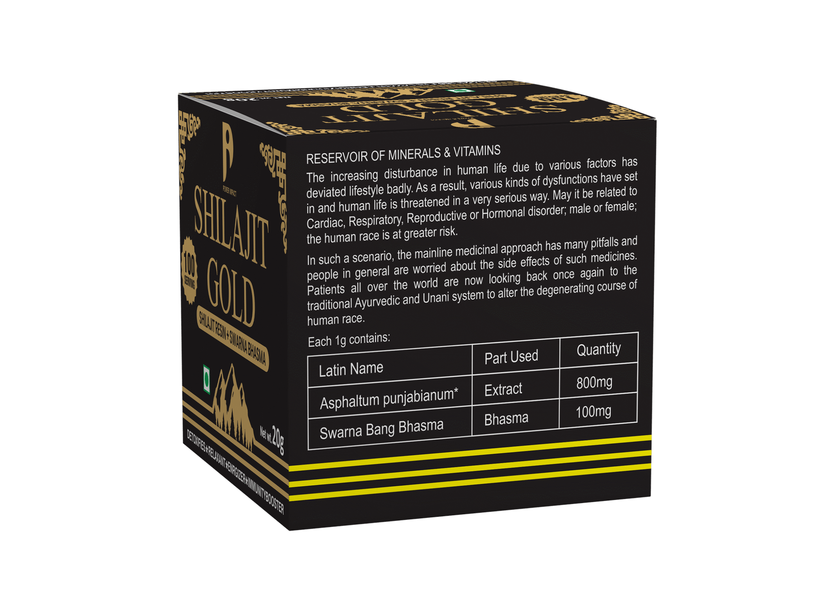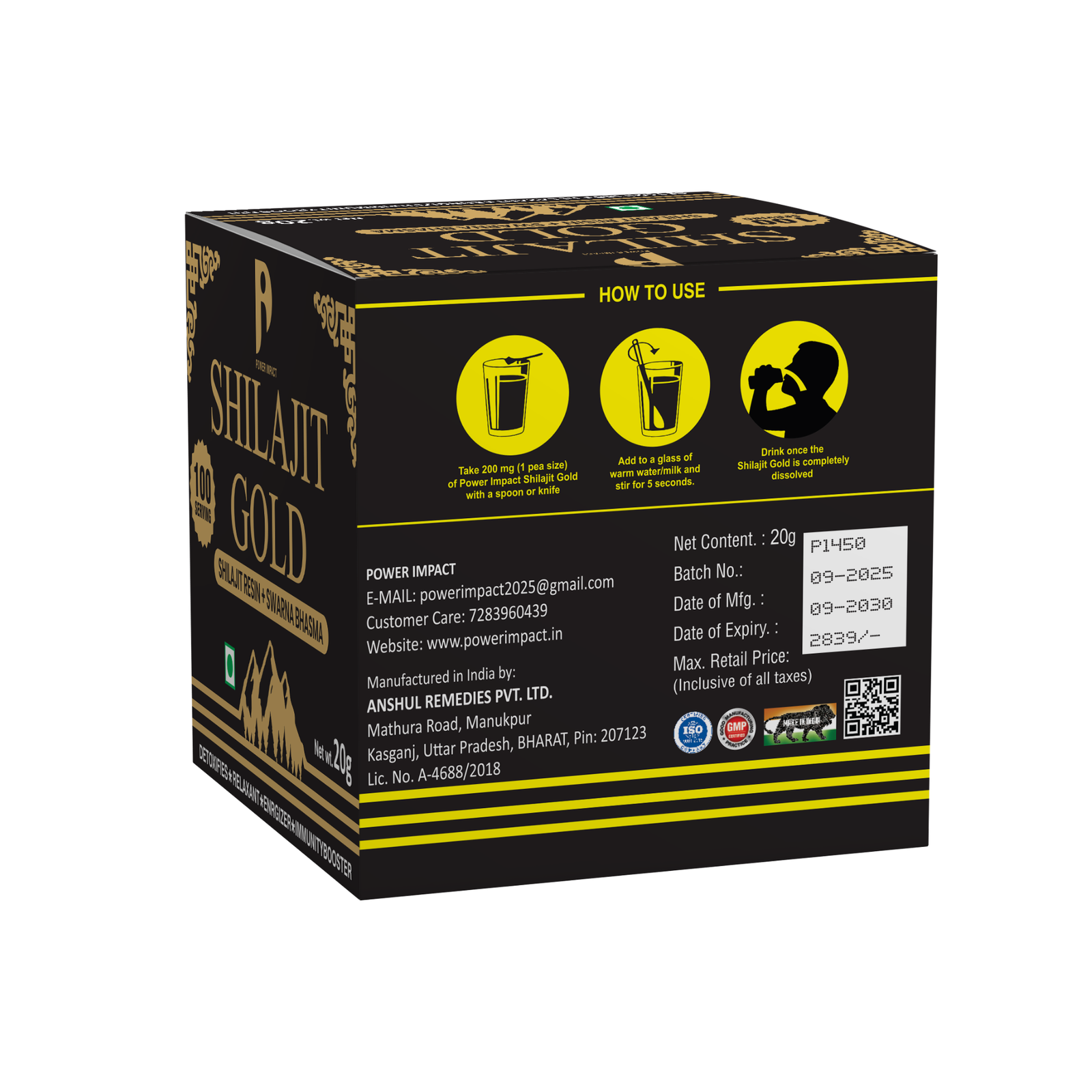 Power Impact Shilajit Gold is a superior-grade wellness formulation combining purified Shilajit resin with the richness of Swarna Bhasma. This powerful blend is crafted to support energy, stamina, immunity, and overall vitality. Sourced from natural Himalayan origins, Shilajit Gold provides a potent dose of essential minerals and fulvic acid known for their rejuvenating properties.